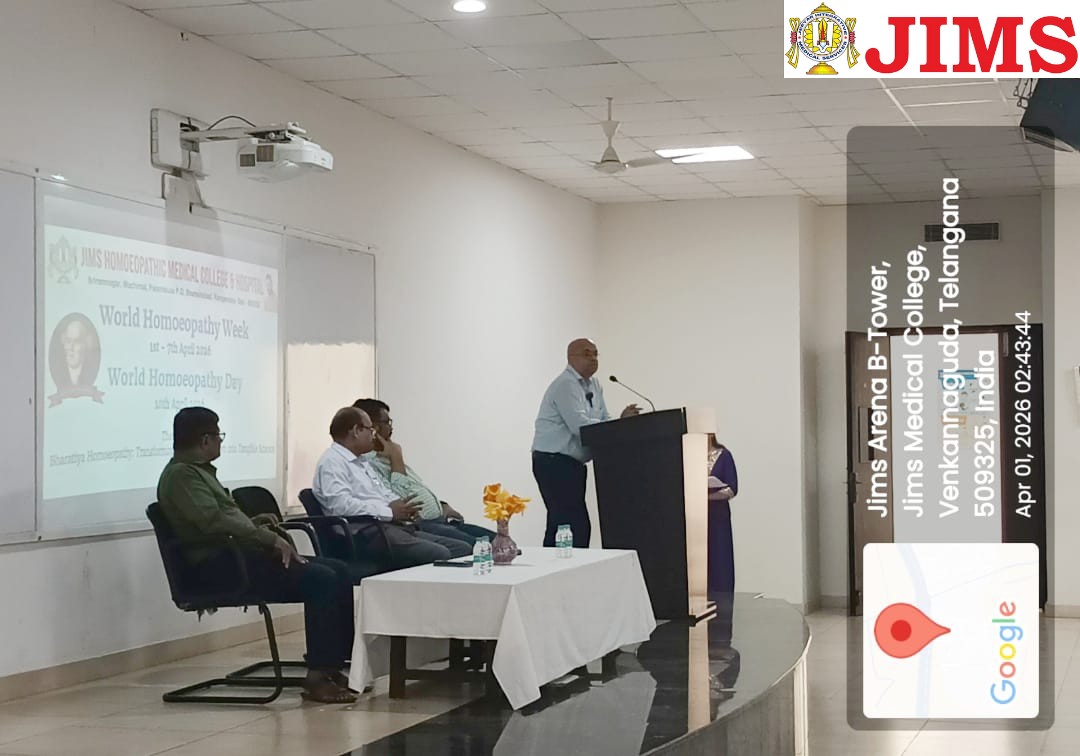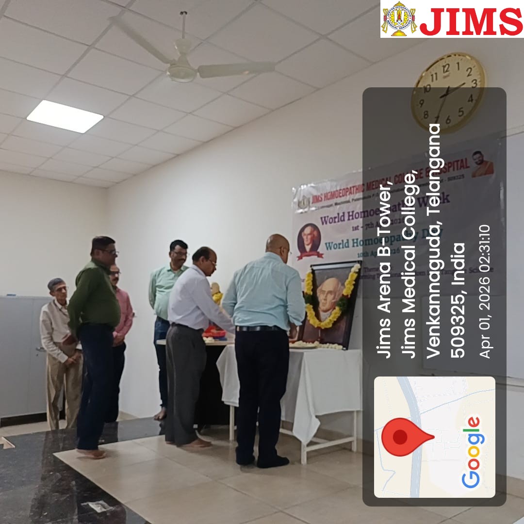 JIMS Homoeopathic Medical College & Hospital formally inaugurated the celebration of World Homoeopathy Week (1st–7th April 2026), commemorating the birth anniversary of Dr. Samuel Hahnemann and promoting academic excellence, research orientation, and professional development among students and faculty.