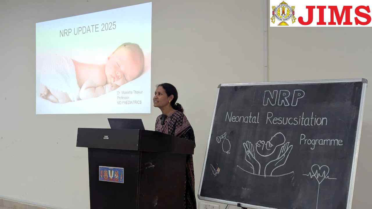 JIMS Homoeopathic Medical College & Hospital (JIMS HMC) organized a Workshop on the Neonatal Resuscitation Program (NRP) on 04 December 2025 from 2:00 pm to 5:00 pm. The workshop was conducted by the Department of Paediatrics with the objective of strengthening interns’ understanding and skills in evidence-based neonatal resuscitation.