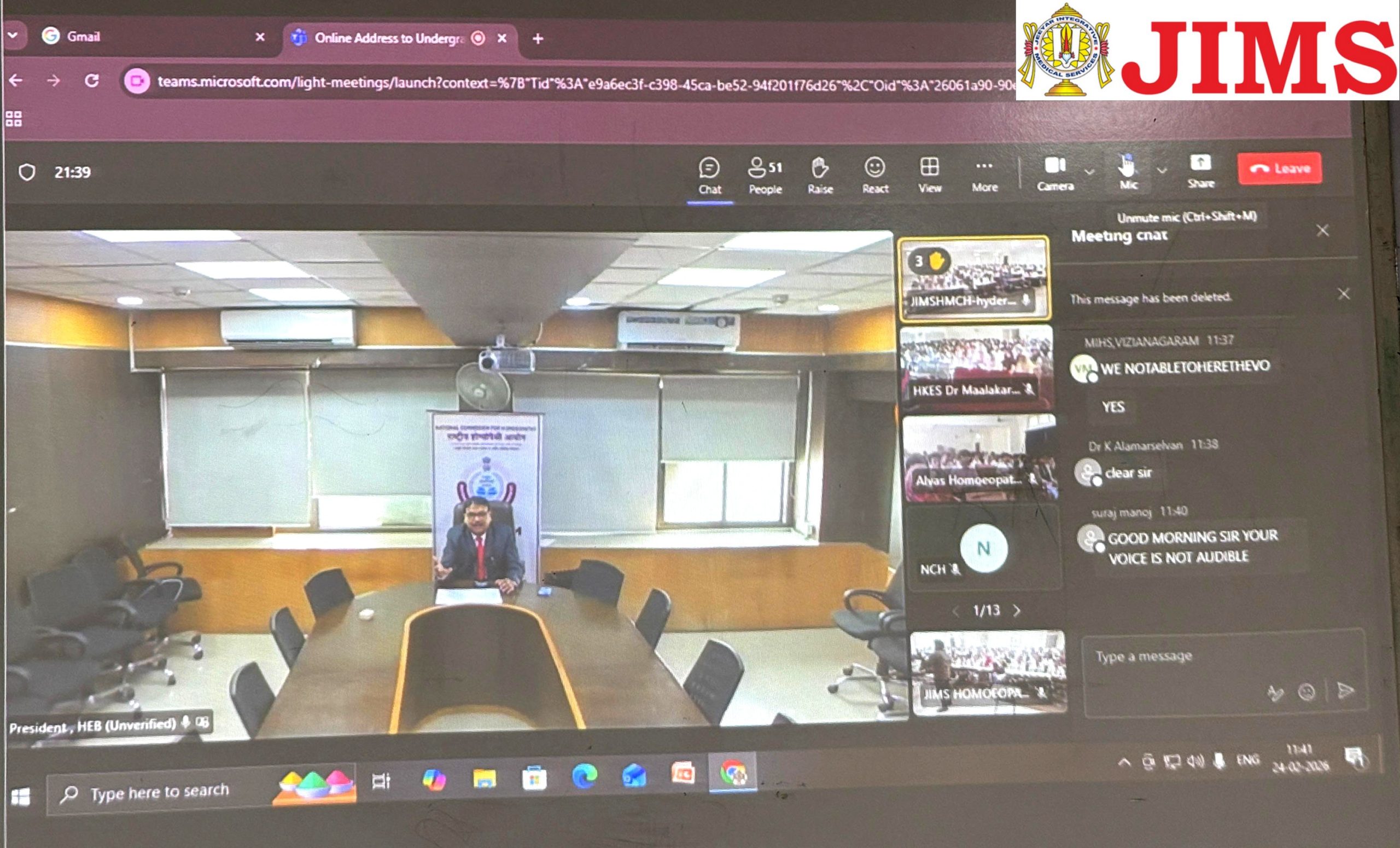 JIMS Homoeopathic Medical College & Hospital proudly participated in an inspiring virtual meeting addressed by Dr. Rajat Chattopadhyay, President, Homoeopathic Education Board, National Commission for Homoeopathy (NCH).